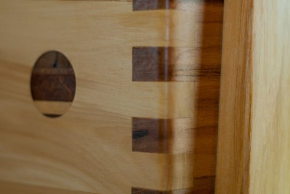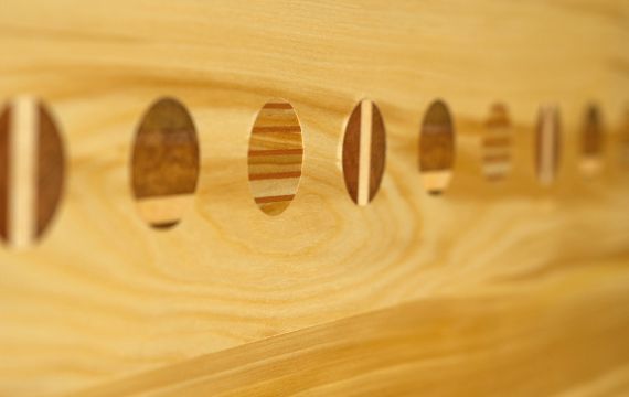 Red beech, kahikatea, rimu, stainless steel air shock.