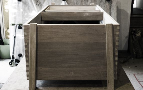 A large chest designed as a storage box and daybed.