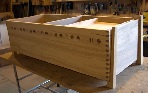 Pictured before its upholstered top is finished.