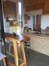 Mitred White and black High pressure laminate plywood (HPL), pastel green birch HPL, Rimu details between units and drawer fronts, concealed fixing Rimu shelves, LVL plywood bench top, stainless steel bench top and, black HPL kickboards, Blum softclose all around. Minimal MDF used (only on drawer bottoms), Breccia board bar leaner with concealed LED strip. LED strip in black overhead unit, Custom tiles by Gemma Scott Ceramics.